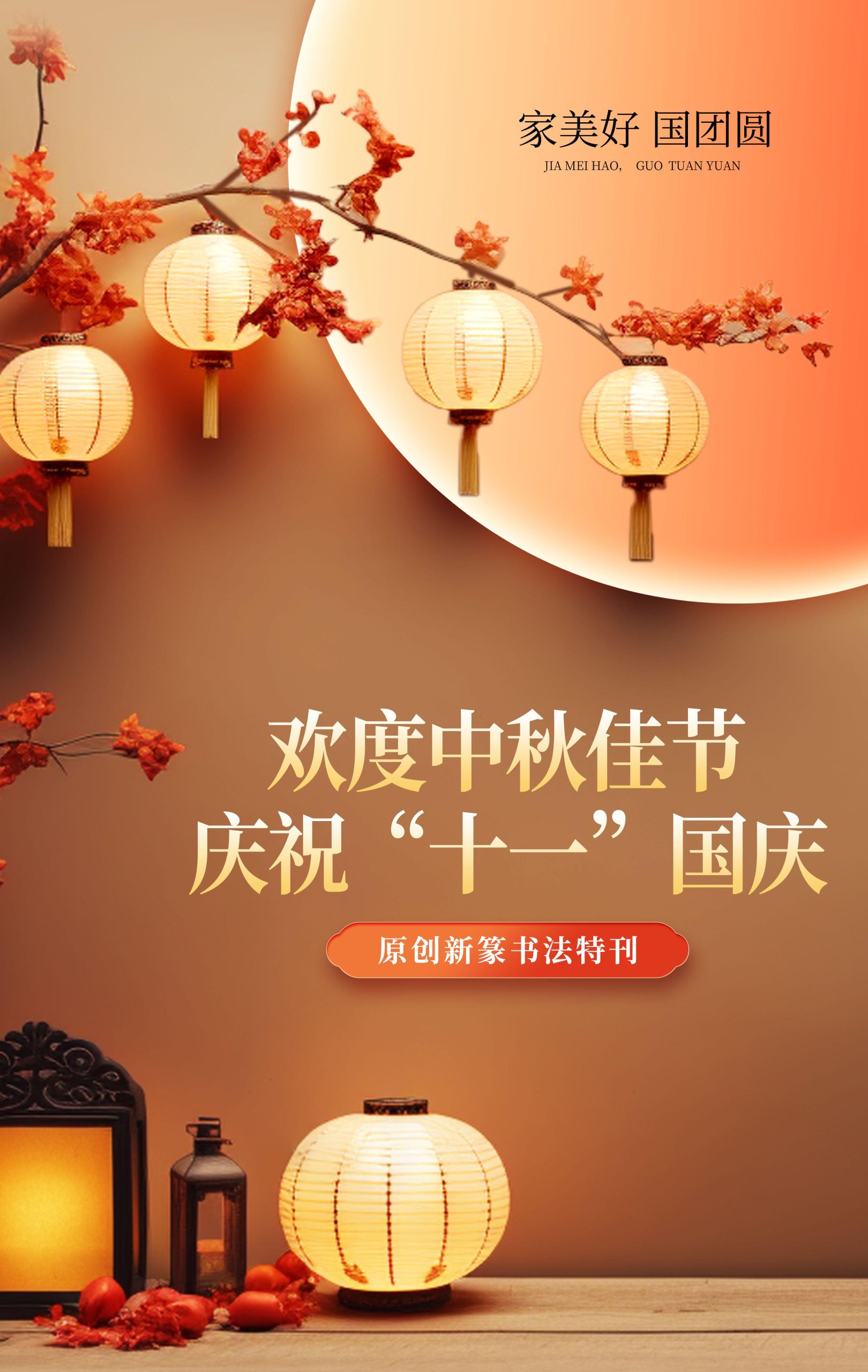 当中秋的清辉洒满人间,国庆的欢歌响彻神州,双节同庆的美好时刻,书法家刘梅校以原创新篆为笔,将家国情怀、节日意趣凝于笔墨之间,让古老篆体在当代绽放新彩。每一幅作品既是对传统文字美学的传承,更是对 “家美好,国团圆” 时代愿景的生动诠释,字里行间满溢着对佳节的礼赞、对家国的深情。